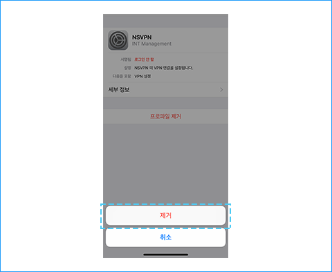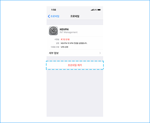 프로파일 화면을 통하여 해당 프로파일이 제거된 것을 확인하실 수 있습니다.